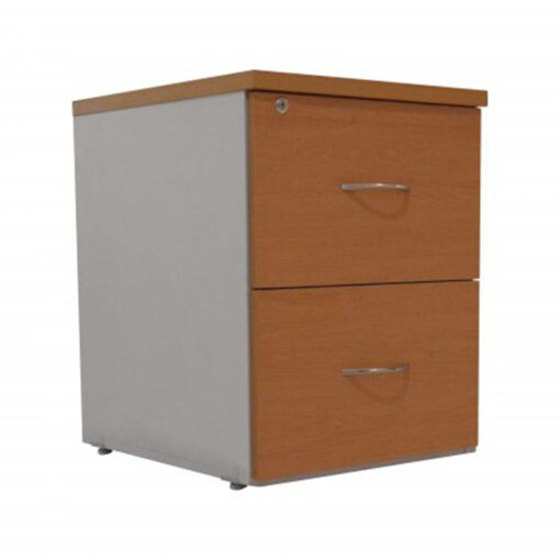 Archivero vertical con 2 gavetas, fabricado en melamina de 28 y 16 mm de espesor color a elección, con correderas de extensión embalinadas reforzadas, canto en PVC termo adherido, con niveladores, mecanismo de cierre general con llave, medidas 0.50×0.55×0.65