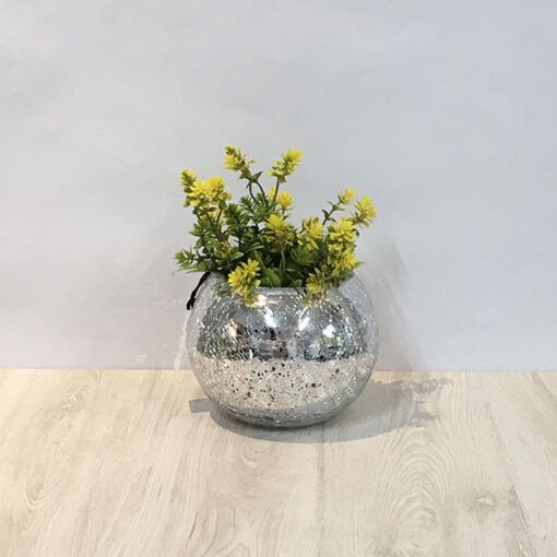 Arreglo en base de vidrio texturizada con acabado espejo reflejante, ideal para complementar la decoración de tu oficina o casa.