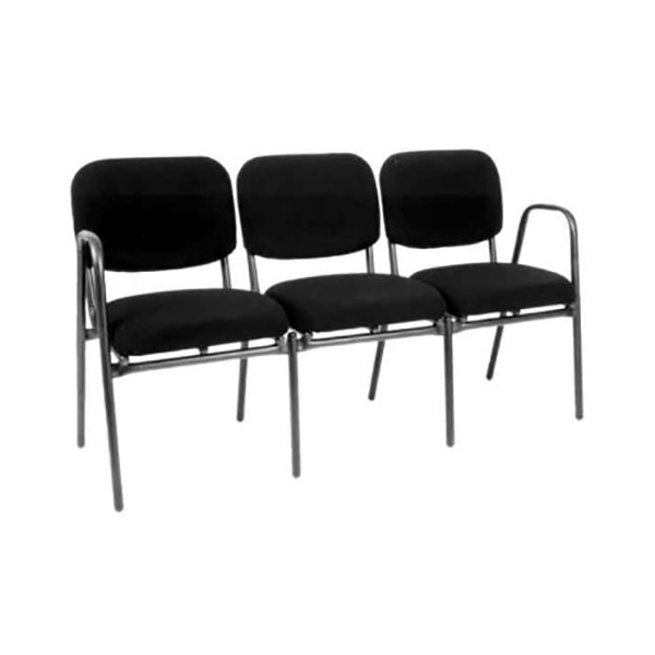 Banca visitante de 3 plazas, asiento y respaldo tapizados en tela o vinil color a elección, estructura tubular redondo de 1″ calibre 18 con acabado en pintura epoxica texturizada color negro, con descansabrazos integrados a la estructura