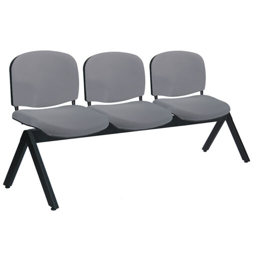 Banca visitante 3 plazas estructura: de acero tubular rectangular de 1 1/2″ X 3″, calibre 16, asientos y respaldos de perfil redondo tubular de acero ponchado con travesaños separadores tubulares redondos de acero con acabado de pintura epóxica (electrostática) color negro mate. Respaldo y asiento: hule espuma laminado flexible con densidad en el respaldo de 22 kgs/m3 y de 24 kgs/m3 en el asiento y alta resilencia. Tapiz: tela o vinil al color de su elección de nuestro catálogo. Peso máximo de resistencia: 300 kgs.
