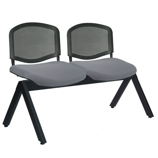 Banca visitante de dos plazas estructura: de acero tubular rectangular de 1 1/2″ X 3″, calibre 16, asientos y respaldos de perfíl redondo tubular de acero ponchado con travesaños separadores tubulares redondos de acero con acabado de pintura epóxica (electrostática) color negro mate. Respaldo: en malla de diseño ergonómico. Asiento: hule espuma laminado flexible con densidad en 24 kgs/m3 y alta resilencia. Tapiz: respaldo de malla al color de su elección de nuestra colección Malla Furny y asiento en tela o viníl al color de su elección de nuestro catálogo. Peso máximo de resistencia: 200 kgs.