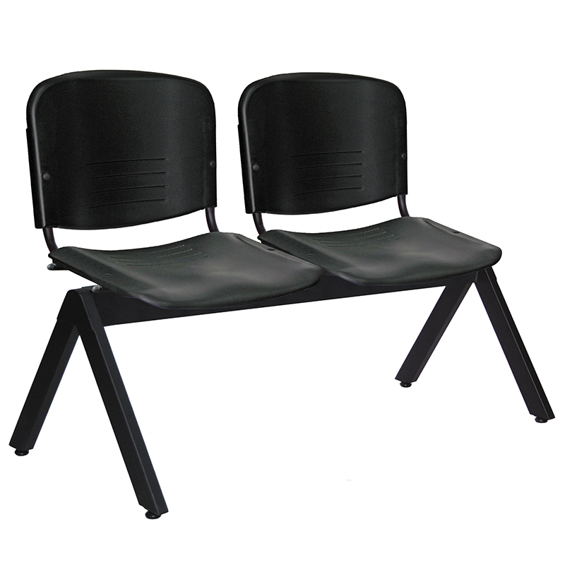 Banca visitante de 2 plazas estructura: de acero tubular rectangular de 1 1/2″ X 3″, calibre 16, asientos y respaldos de perfíl redondo tubular de acero con travesaños separadores tubulares redondos de acero con acabado de pintura epóxica (electrostática) color negro mate. Respaldo y asiento: en dos piezas en polipropileno de alta resistencia y duración. Color: negro. Peso máximo de resistencia: 200 kgs.