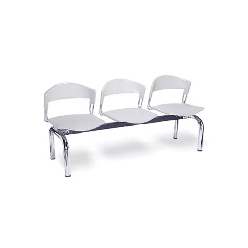 Banca 3 plazas para eventos con diseño ergonómico. Cuenta con asiento y respaldo bajo elaborados en polipropileno inyectado. Su base es de acero tubular redondo de 2¨cal. 16 de 4 patas en forma de U, terminado en cromo o en pintura electrostática color negro o gris. Es adaptable a colocar mesa color negro en cualquier posición.