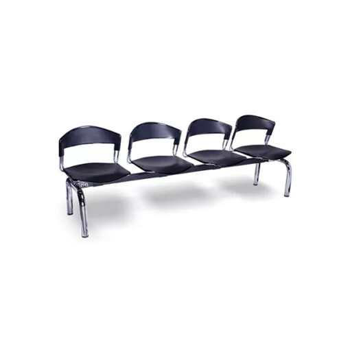Banca 4 plazas para eventos con diseño ergonómico. Cuenta con asiento y respaldo bajo elaborados en polipropileno inyectado. Su base es de acero tubular redondo de 2¨cal. 16 de 4 patas en forma de U, terminado en cromo o en pintura electrostática color negro o gris. Es adaptable a colocar mesa color negro en cualquier posición.