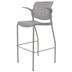 Banco tipo taburete, con descansa pies, estructura metálica, terminada en color gris, asientos y respaldos color a elegir fabricados en polipropileno, con brazos