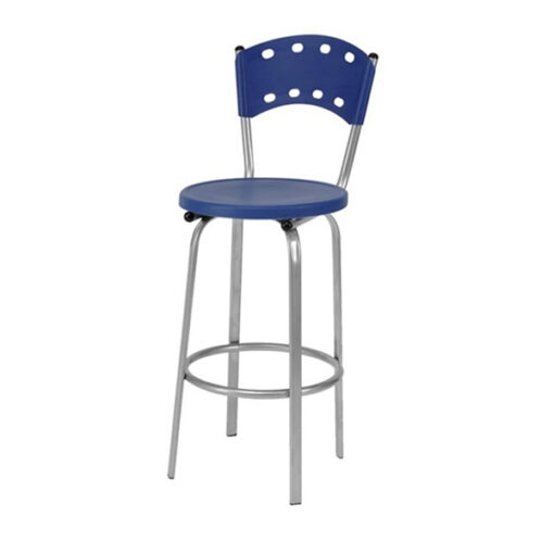 Banco Restaurante con estructura metálica tubo de acero redondo de 1” cal. 18 en 4 patas, tapones de polipropileno en terminales para evitar rayaduras en piso, terminado en cromo o pintura epóxica texturizada. Asiento fabricado en polipropileno con ceja de 3 cms. y respaldo: fabricado en polipropileno perforado, Colores rojo, azul, negro, blanco y amarillo