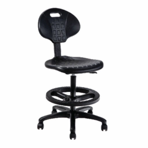 Banco industrial de cajero elevacion neumatica base de 24″ de nylon con refuerzo de acero asiento con diseño en poliuretano , respaldo medio con respaldo y perilla para regular tension del mismo no acepta brazos incluye kit de cajonero de Nylon