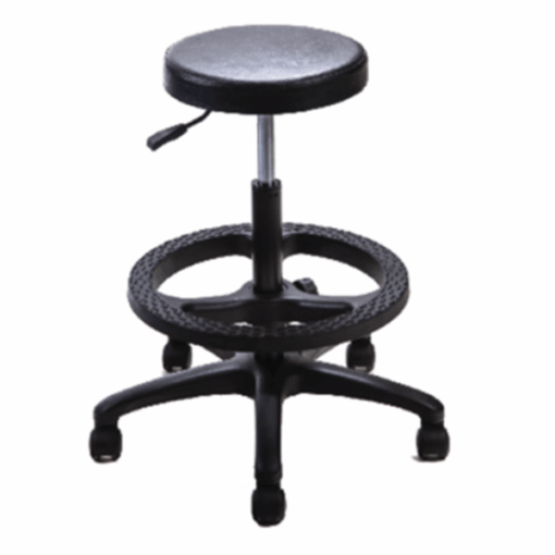 Taburete con elevación neumática base de 24” fabricada en nylon reforzado con cinturón de acero en parte central asiento redondo fabricado en poliuretano incluye kit de cajero de Nylon