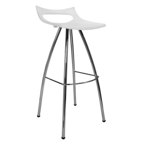 Banco de estructura de 4 patas en acero cromado o pintado. Asiento en polipropileno.