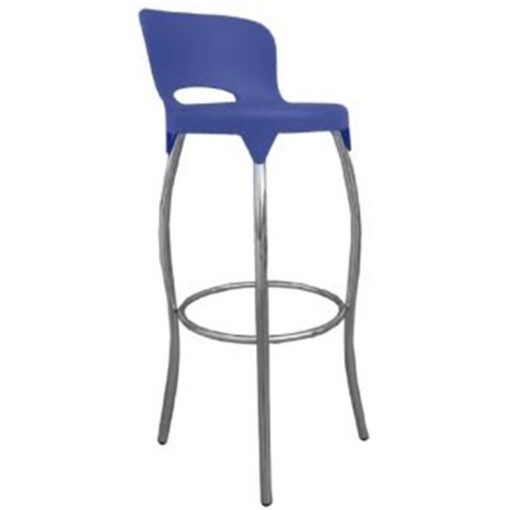 Banco Alto de importación con estructura cromada, asiento de polipropileno varios colores disponibles y aro descansapies