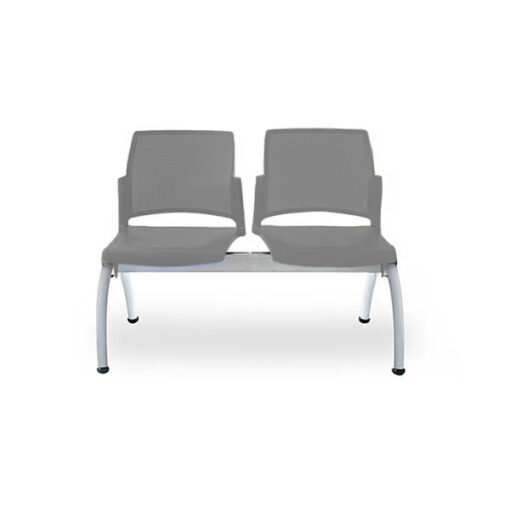 Banca 2 plazas, base de 4 patas en tubular acero pintado en gris, negro y cromado, con asiento y respaldo multiperforado en polipropileno. Para uso interno. Kit tapiz y juego de brazos opcional.