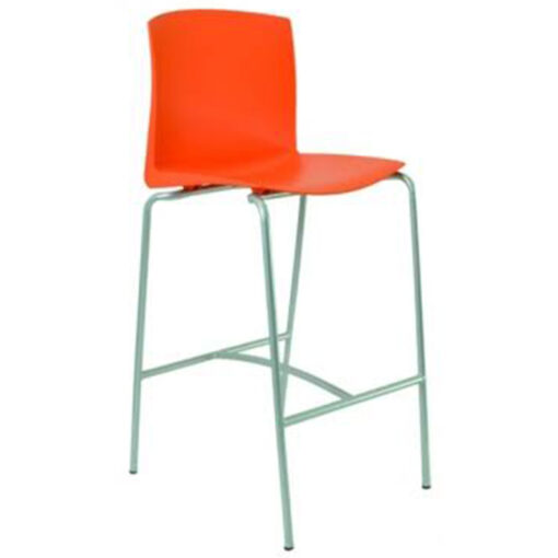 Banco alto de 4 patas terminado en pintura color gris, top de asiento fabricado en polipropileno en diferentes colores