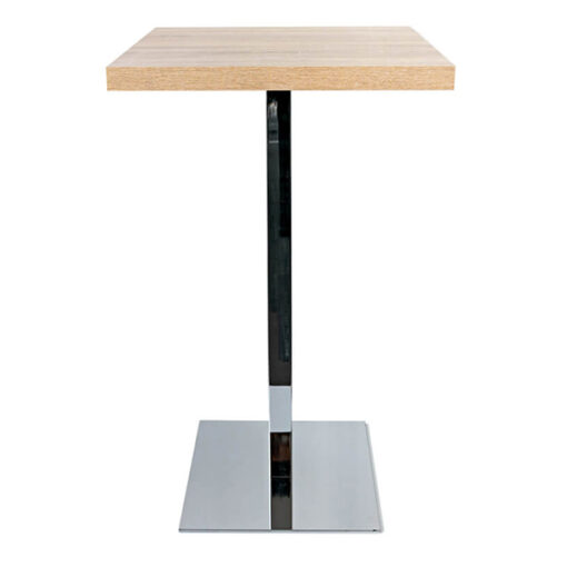 Base cuadrada 47×47 para mesa en acero galvanizado recubierto con tecnopolímero y una columna cuadrada en aluminio anodizado. Altura 1.10 mts (cubiertas hasta 0.70 mts) color cromo. Para uso interno.