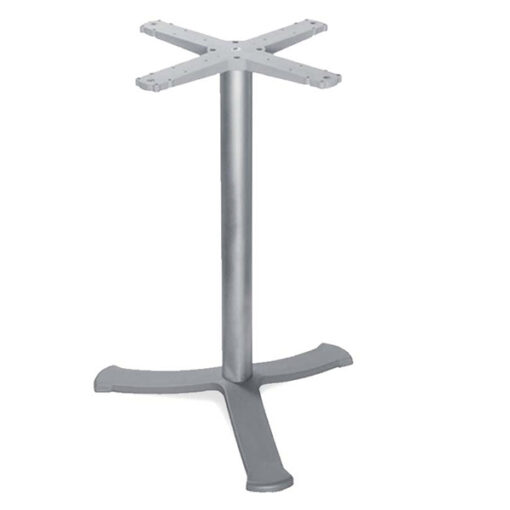 Base de 3 puntas para mesa en acero galvanizado recubierto con tecnopolímero y una columna redonda en aluminio anodizado. Altura 1.10 mts (cubiertas hasta 0.70mts) color gris plata. Para uso externo.