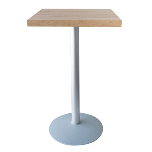 Base para mesa elaborada en acero pintado, columna cilíndrica 60mm con plato circula 0.50mts para h.73. Para uso Interno. Altura y soporte de cubierta: H.73 – D.50, Cubierta Circular D.80