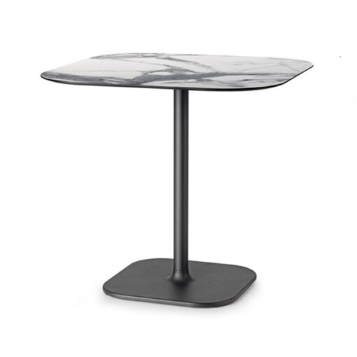 Expresión de un diseño minimalista y refinado, la base Rhino tiene un aspecto que permite aplicaciones contract versátiles. Puede combinarse con cubiertas de diferentes medidas y acabados, y destaca por una base cuadrada de hierro fundido pintado, con las características esquinas redondeadas. Disponible en dos alturas, es especialmente estable gracias a la propia forma de la base ya los pies regulables.