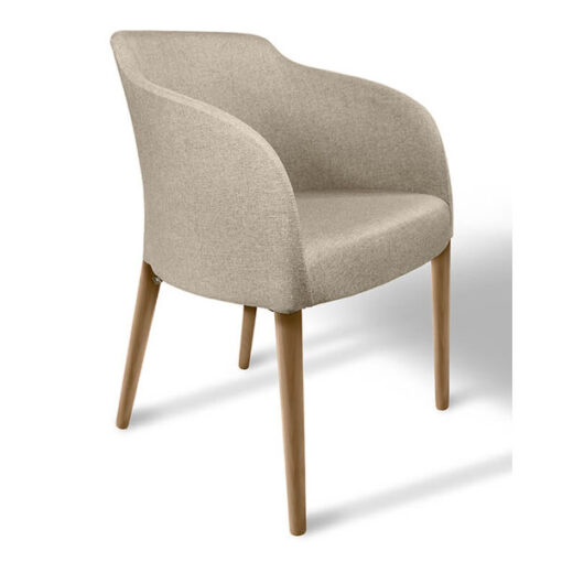Cuerpo en poliuretano inyectado y tapizado. Base de 4 patas en madera de fresco natural y wengué. Para uso interno