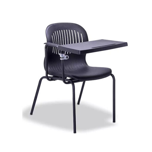 Butaca universitaria de lujo con estructura en acero tubular terminado en pintura electrostática, asiento y respaldo de una sola pieza en polipropileno inyectado de alta resistencia y diseño ergonómico para máximo soporte lumbar. Además cuenta con una paleta de escritura abatible de polipropileno anti pánico.