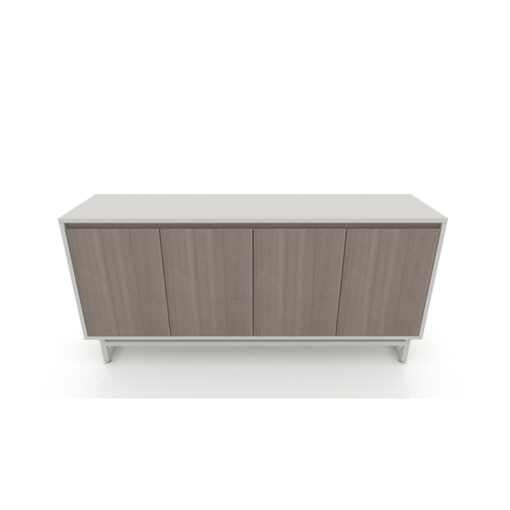 Credenza con 4 puertas abatible con entrepaño, jaladera integrada en puertas, estructura metálica tubular cuadrado 1″x1″. Fabricada en melamina de 28mm. Frentes embutidos. Medidas: 160x40x75cm.