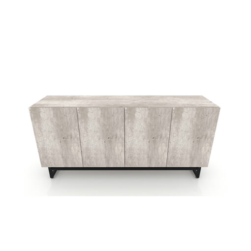 Moderna Credenza con 4 puertas abatibles con entrepaño interno, jaladera integrada en puertas, estructura metálica tubular cuadrado 1″x1”. Fabricada en melamina de 16mm. color a elección con cantos en PVC Frentes tipo parche. Medidas: 160x40x75cm.