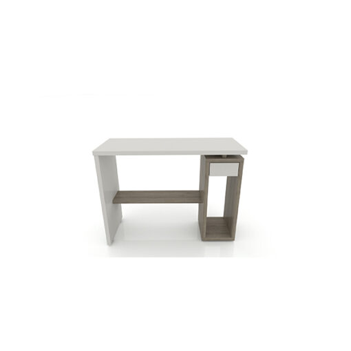 Escritorio fabricado en melamina con pedestal de un cajón pequeño superior, porta CPU inferior, y soporte vertical, medidas 1.00×0.40×0.75