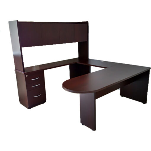 Escritorio ejecutivo fabricado en melamina 28mm de espesor color a elección cantos PVC, medidas 1.80×0.75 con puente de 1.00×0.45. credenza de 1.80×0.45 y librero sobre credenza con 4 puertas abatibles sin jaladera, cajonera de dos cajones y una gaveta para archivo tamaño oficio, medidas totales 1.80×2.20 (disponible en otras medidas)