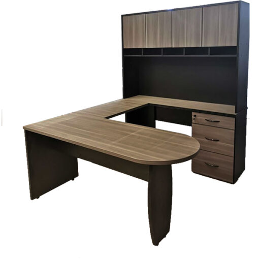 Escritorio ejecutivo fabricado en melamina 28mm de espesor color a eleccion cantos PVC, medidas 1.60×0.60 con lateral de 1.00×0.45, credenza con cajonera de un cajon y dos gavetas para archivo tamaño oficio, librero sobre credenza con 4 puertas abatibles y semanario, medidas totales 1.60×2.00×0.75 (disponible en varias medidas)