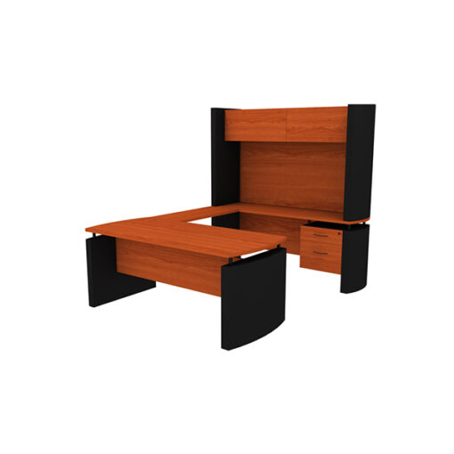 Conjunto Dirección con cubierta flotante con patas de tambor, credenza posterior con patas en tambor, archivero suspendido con cajón papelero y cajón de archivo, tamaño oficio, cerradura múltiple, librero diseño tambor, 2 puertas abatibles. Medidas Escritorio: 180x80x75 (Patas en tambor curvo), Credenza con Archivero: 180x50x75 (Costados en tambor curvo), Librero: 180x50x110 (Costados en tambor curvo)