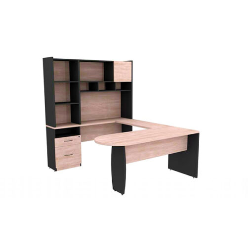 Conjunto ejecutivo con cubierta bala, credenza posterior con archivero pedestal cajón papelero, cajón de archivo y claro papelero, tamaño oficio, cerradura múltiple, librero con 7 claros organizadores y 1 puerta abatible. Medidas Escritorio: 160x60x75, Credenza con Archivero: 160x40x75, Librero: 160x34x110 y Puente: 100x40x75
