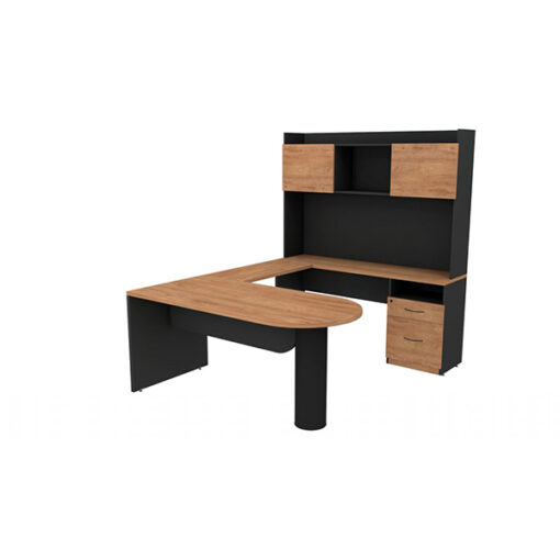 Conjunto ejecutivo Linea Económica cubierta peninsular con lateral, pata tubular metálico liso, credenza con archivero pedestal, cajón papelero, cajón de archivo y claro organizador, tamaño oficio, librero sobre credenza con claro organizador, 2 puertas abatible y copete. Medidas Escritorio: 160x60x75, Puente: 90x40x75, Credenza: 160x40x75 y Librero: 160x30x110