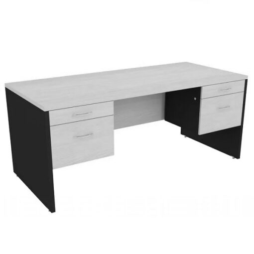 Escritorio ejecutivo fabricado en melamina 28mm de espesor color a elección con cantos en PVC termoadherido, doble cajonera de un cajón y una gaveta para archivo con mecanismo de cierre general con llave, medidas 1.80×0.80×0.75 varios colores a elegir