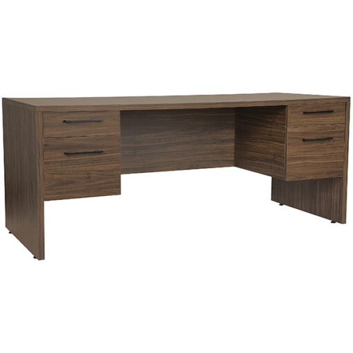 Escritorio ejecutivo, fabricado en melamina de 28 mm. en cubierta y patas, canto rigido en PVC del mismo tono de la cubierta, 2 cajoneras izquierda y derecha, fabricados en melamina de 16 mm. (1 lapicero y 1 archivo), regatones nivelador.