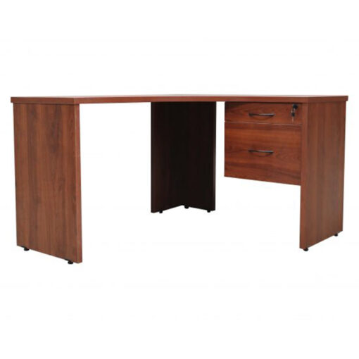Módulo esquinero con cajonera de 1 lapicero y 1 archivero con mecanismo de cierre general, fabricado en melamina de 28 y 16 mm de espesor color a elección con cantos en pvc termo adherido. Fondo 0.50 cm. Medidas generales 1.40×1.20×0.75
