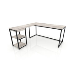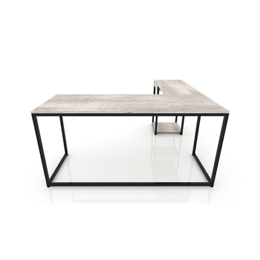 Conjunto secretarial en «L» formado por escritorio y lateral con 2 entrepaños y cajón lapicero, cubierta en melamina de 16mm. Estructura metálica tipo trineo en tubular cuadrada de 1″x1″. Escritorio: 160x60x75cm. Lateral: 100x40x75cm.
