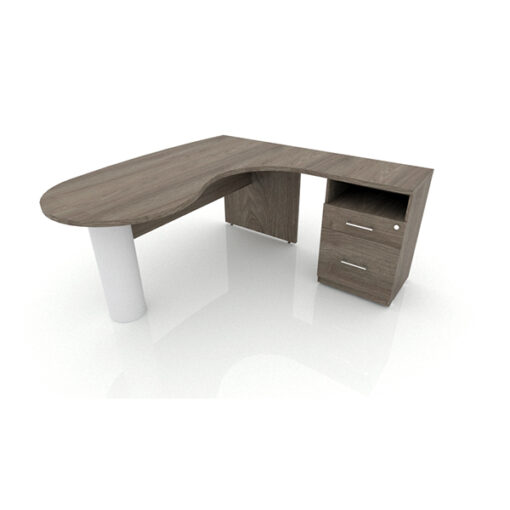 Conjunto secretarial con cubierta ergonómica, pedestal metalico, faldon de melamina, lateral con archivero pedestal, con cajon papelero, cajon de archivo y claro papelero, tamaño oficio, fabricado en melamina de 28mm. sin porta teclado. Medidas Escritorio: 160x70x75 y Lateral: 90x42x75