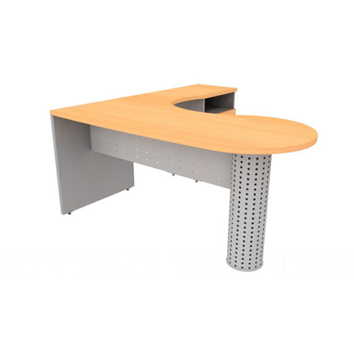Conjunto secretarial con cubierta peninsular con pedestal metálico multiperforado, faldón metalico, lateral con archivero pedestal, cajon papelero, cajon de archivo y claro papelero, tamaño oficio, incluye cerradura múltiple. fabricado en melamina de 28mm. Medidas Escritorio: 160x70x75 y Lateral: 90x42x75
