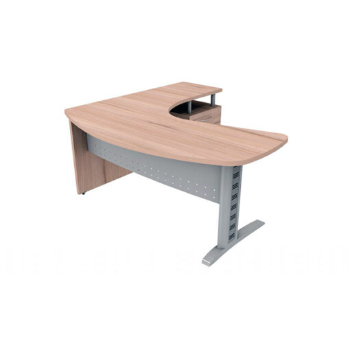 Conjunto secretarial con pata estilo patín, faldón metálico perforado, lateral flotada con archivero pedestal con cajon papelero y cajon de archivo tamaño oficio. fabricado en melamina de 28mm. Medidas Escritorio: 160x70x75 y Lateral: 90x42x75