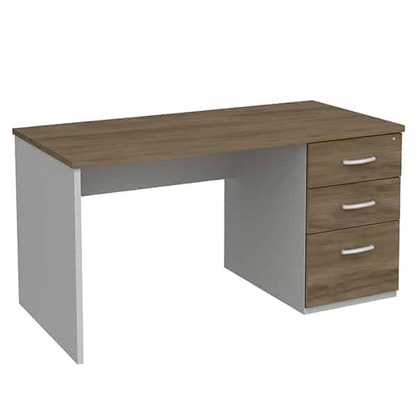 Escritorio secretarial tipo grapa fabricado en melamina 28mm de espesor color a elección cantos PVC con cajonera de dos cajones y una gaveta para archivo medidas 1.20×0.60×0.75, varias medidas disponibles
