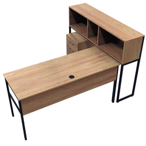 Conjunto Semi Ejecutivo formado por: Escritorio básico 150 cm. Cubierta y frontal en melamina termofusionada en ambas caras de 19 mm.. Cantos de chapacinta de pvc 1 mm.. Estructura tubular de acero cal. 20 . Terminada en pintura epóxica texturizada horneada. Regatón nivelador y tapones protectores para la estructura metálica. Grommet plástico para pase de cables, medidas 1.50×0.60×0.75.