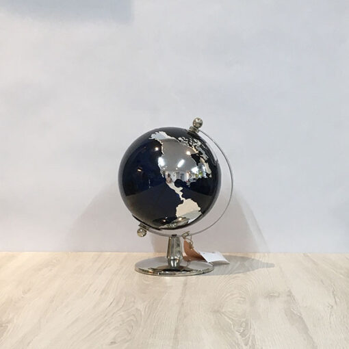 Globo Terráqueo de cristal, base metálica acabados color plata ideal para cualquier espacio