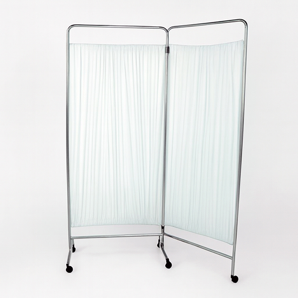 Biombo esmaltado de 2 hojas plegable, estructura tubular redondo de 1” cal.18, acabado esmaltado con pintura horneada, dimensiones 178cm.de alto x 125cm de ancho (medida ancho sin traslape), con tela y carretillas giratorias