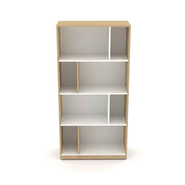 Librero con 4 claros organizadores tamaño carta con divisiones, fabricado en melamina de 16 mm con cantos PVC. Medidas 1.60×0.35×0.80