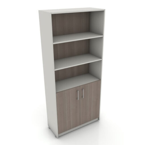 Librero de piso fabricado en melamina de 28 y 16 mm de espesor color a elegir, cuenta con 3 huecos superiores con espacios para carpeta tipo leford, y 2 puertas inferiores con 2 huecos de tamaño de carpeta leford, medidas 0.80×0.40×1.80
