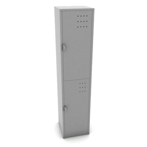 Locker metálico 2 puertas con diseño multiperforado, jaladera de media luna con preparación para candado individual (no incluido), disponible en calibre 22 y 24. Medidas: 40*40*180cm
