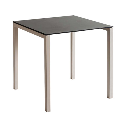 Mesa para exterior estructura de 4 patas elaborada en acero recubierto con tecnopolímero. Cubiertas compact en medidas 0.70X0.70. Para uso interno y externo