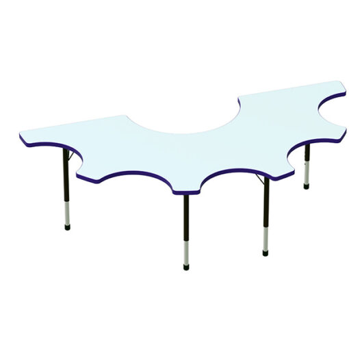 Mesa Escolar cubierta corte ergonómico fabricada en melamina de 25 mm de espesor para su máxima durabilidad; con cantos de PVC, patas con altura ajustable y desmontables que facilitan su almacenamiento. Medidas 1.88×0.91
