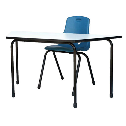 Mesa Escolar práctica y accesible línea de muebles para áreas infantiles. Cubierta fabricada en melamina blanca de 16 mm de espesor, con cantos de PVC, estructura tubular fija en color negro y tapón de polipropileno. Altura fija de 47 cm, medidas de cubierta 52x37x95cm, (silla se vende por separado)