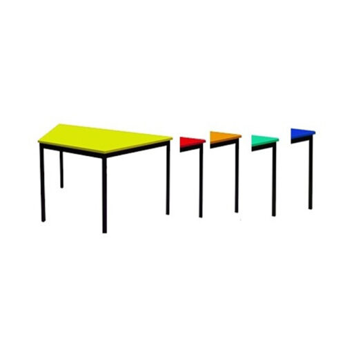 Mesa escolar trapezoidal cubierta en polipropileno «plastico» Estructura: Bastidor en rectangular de 2 1/4X3/4″, Patas en tubular de 1″ Cal. 18, Terminada en Pintura Epoxica texturizada Cubierta en Polipropoleno color(Rojo, Naranja Verde, amarillo y Azul)