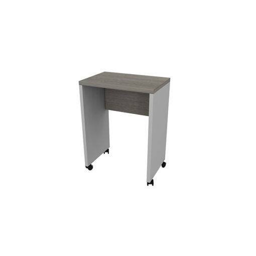 Mesa multiusos tipo grapa con faldón y rodajas fabricada en melamina 28mm de espesor color a elección cantos PVC, Medidas 80x50x75cm.