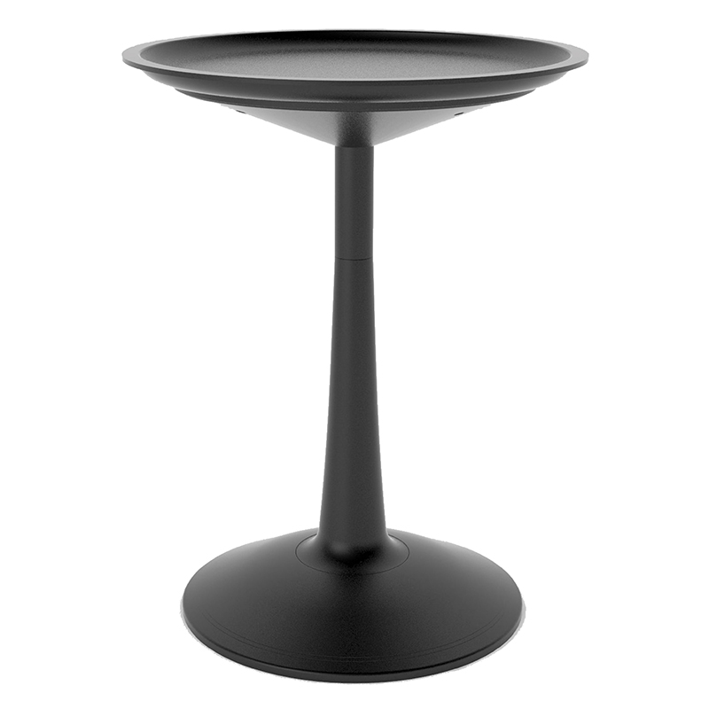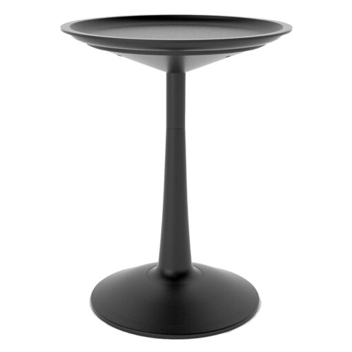 Mesa con base, pedestal y cubierta: En copolímero de polipropileno. Para uso a la intemperie e interior. Resistente a los rayos ultravioleta (UV). Resistente al ambiente salino. Color: Blanco, negro, verde/blanco, naranja/blanco. Peso máximo de resistencia: 180 kgs.